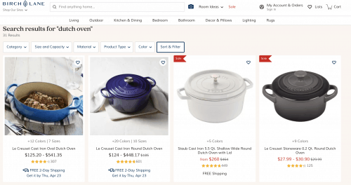 作为一家豪华百货商店,布鲁明戴尔百货公司提供各种各样的产品。虽然它最初是一家服装零售商,但它已经发展到包括各种产品类别。在他们的网站上有许多不同的荷兰烤箱可供选择。